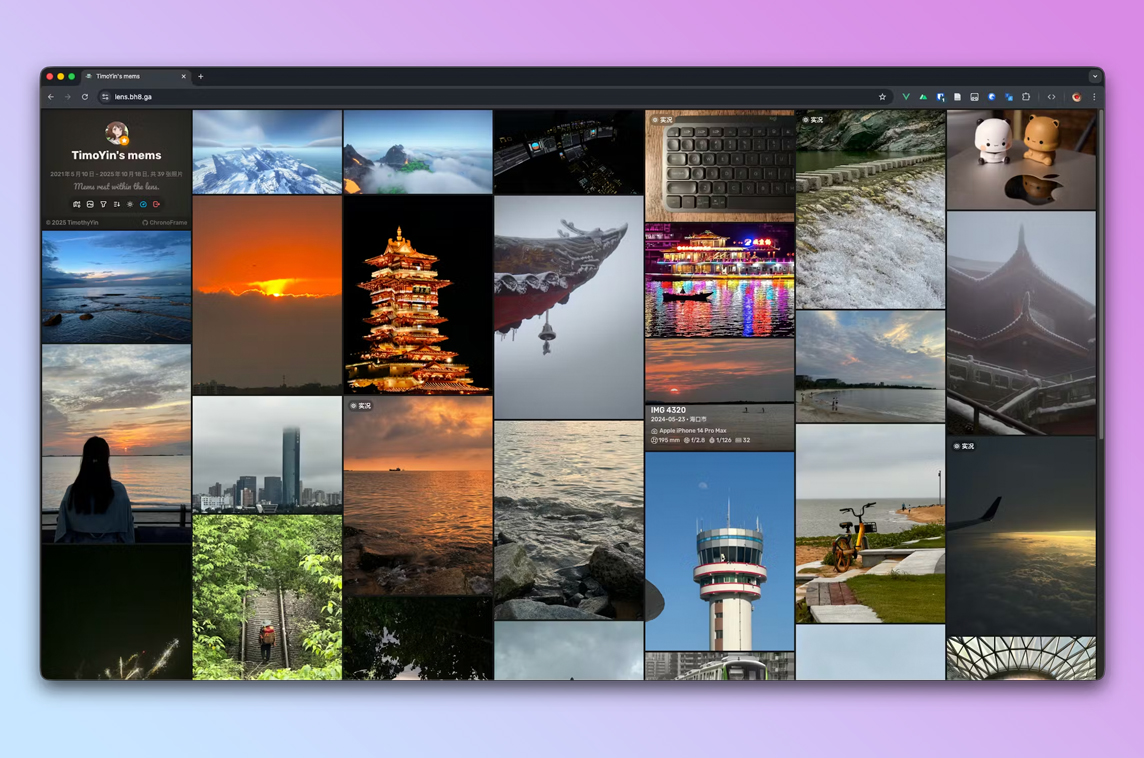 "ChronoFrame is a self-hosted, full-stack photo gallery built with Nuxt 4 + Nitro.