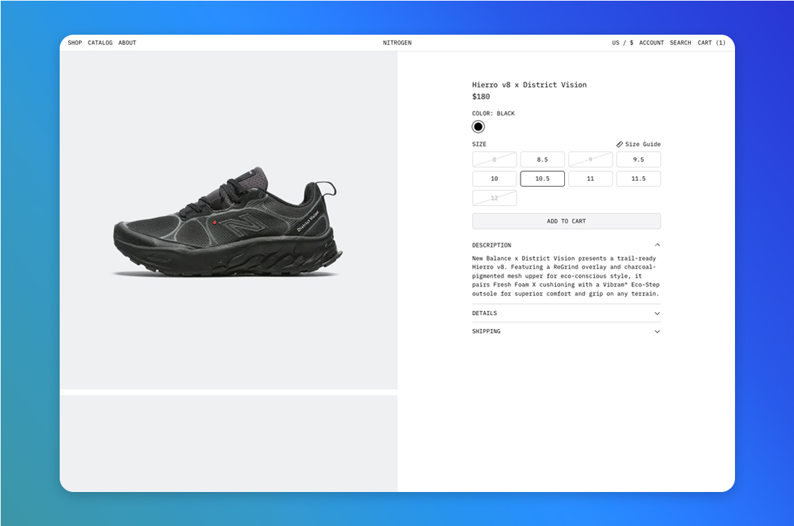 "Nitrogen is a Nuxt template inspired by Shopify's Hydrogen framework for headless commerce.