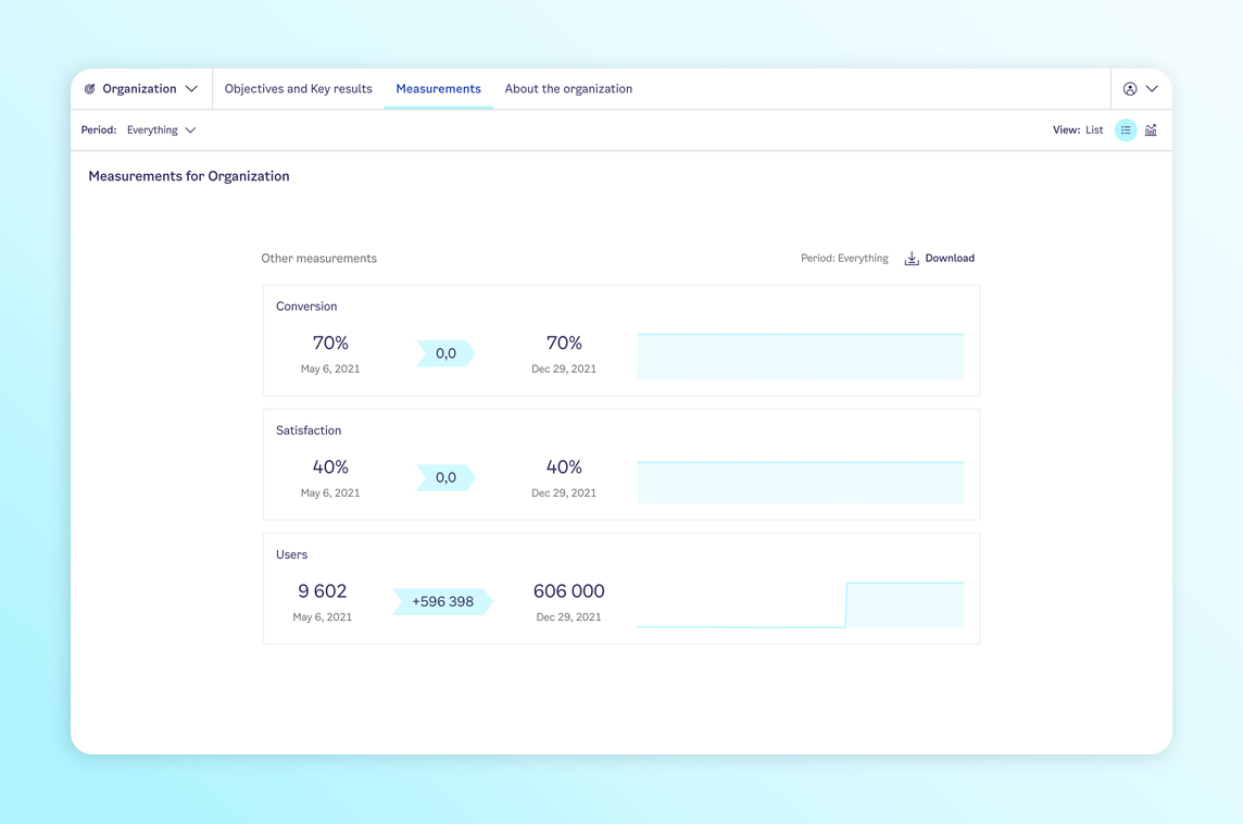 "OKR Tracker is a front-end application for tracking Objectives and Key Results (OKRs) and Key performance indicators (KPIs) for product teams with a Google Firebase backend.