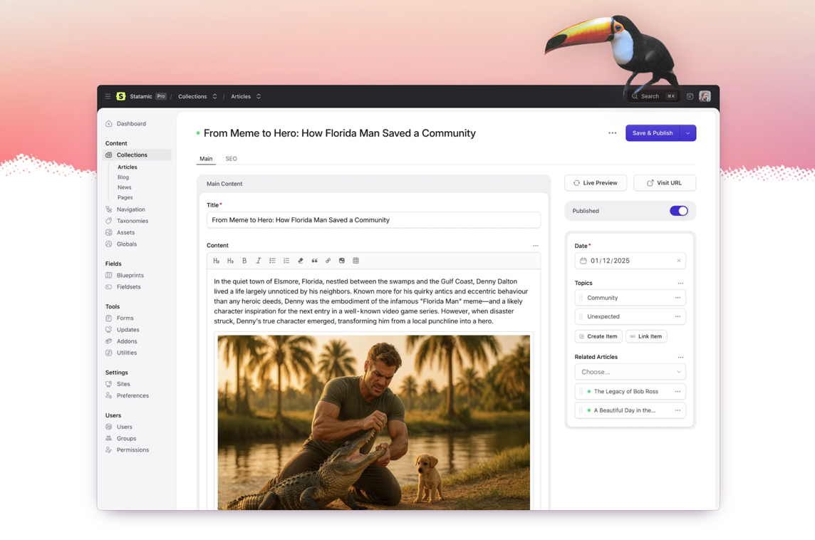 There’s no database until you need one. It’s a front-to-back CMS until you need to go headless. It’s dynamically powered by PHP & Laravel until you need to go static. You can version control everything unless you don’t want to. Use the control panel unless you don’t feel like it.