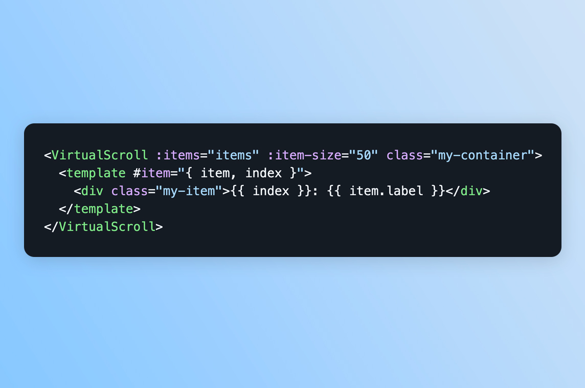 "@pdanpdan/virtual-scroll is a Vue 3 library designed to handle massive datasets with ease.